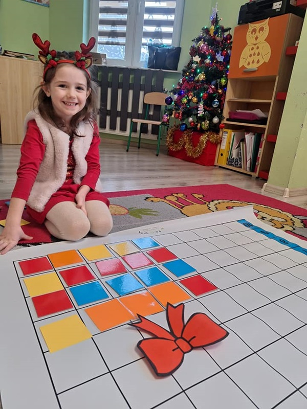 6 grudnia w naszym przedszkolu świętowaliśmy Mikołajki. Już od rana słychać było gwar dzieci ubranych w tym szczególnym dniu w kolorze czerwonym, na głowach widniały mikołajkowe czapeczki i reniferowe poroża. Tego magicznego dnia Przedszkolaki tańczyły w rytm dziecięcych, świątecznych przebojów, bawiły się w zaprzęgi Świętego Mikołaja, układały puzzle świąteczne, jednak najlepszą frajdą była bitwa na śnieżki. Dzieci wykonały także śliczną pracę plastyczną, która zawisła w naszej galerii prac. W mikołajkowe popołudnie kodowaliśmy na dywanie choinki i prezenty. To był wyjątkowy dzień pełen radości.